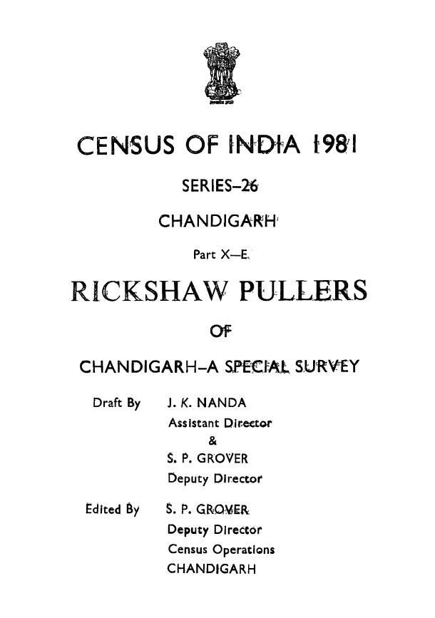 Special Survey, Rickshaw Pullers, Part X-E , Series-26, Chandigarh - Census 1981