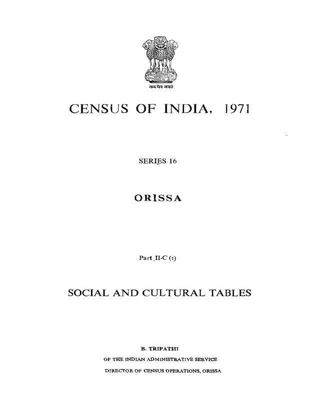 Social and Cultural Tables, Part II-C(i), Series-16, Orissa - Census 1971