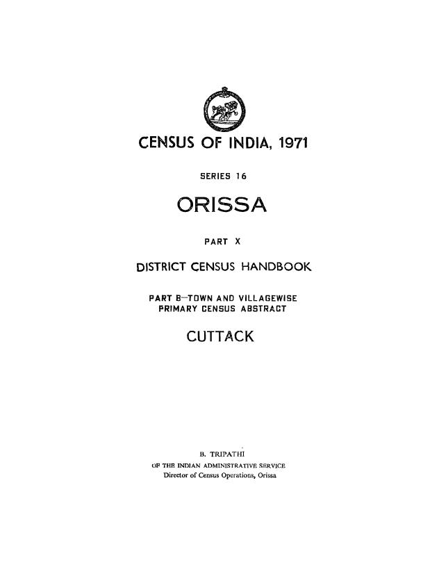Town and Village wise Primary Census Abstract, Cuttack, Part-B, Series-16, Orissa - Census 1971