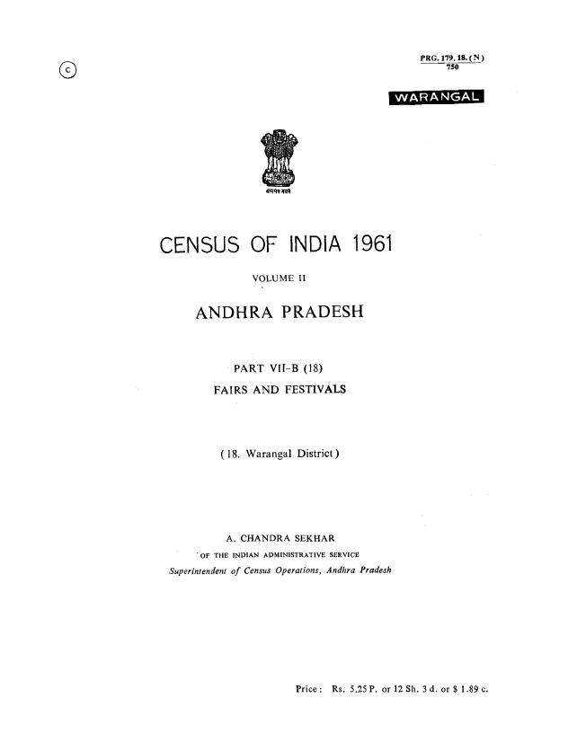 Fairs and Festivals, 18 Warangal, Part VII-B (18), Vol-II - Census 1961