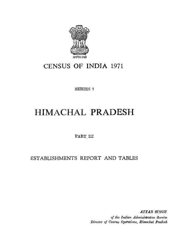 Establishments Report and Tables, Part-III, Series-7, Himachal Pradesh - Census 1971