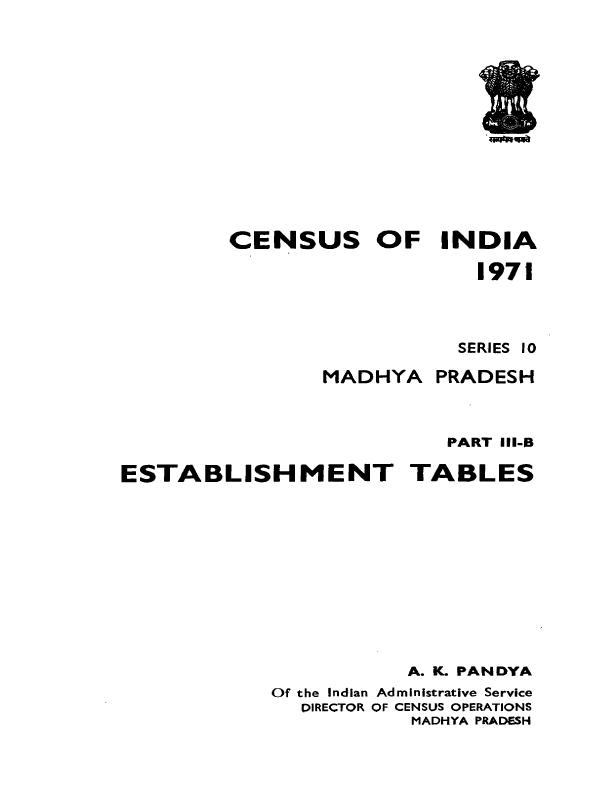 Establishment Tables, Part III-B, Series-10 - Census 1971