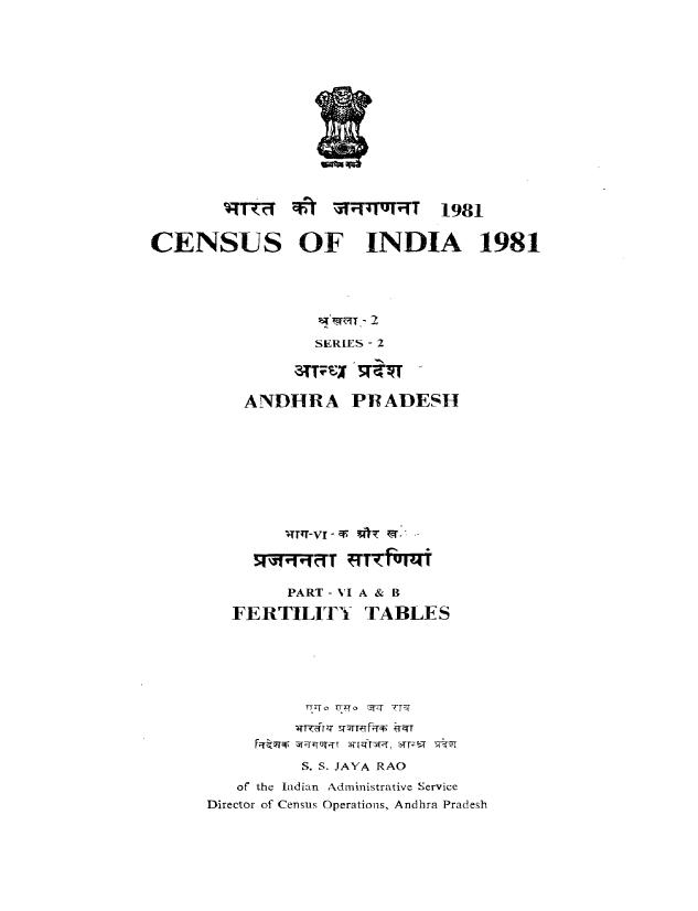 Fertility Tables, Part VI A & B, Series-2 - Census 1981
