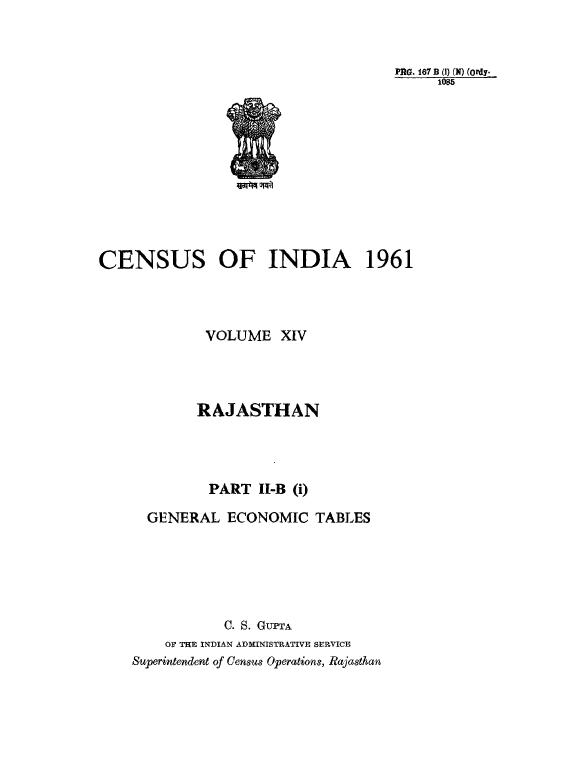 General Economic Tables, Part II-B (i), Vol-XIV, Rajasthan - Census 1961