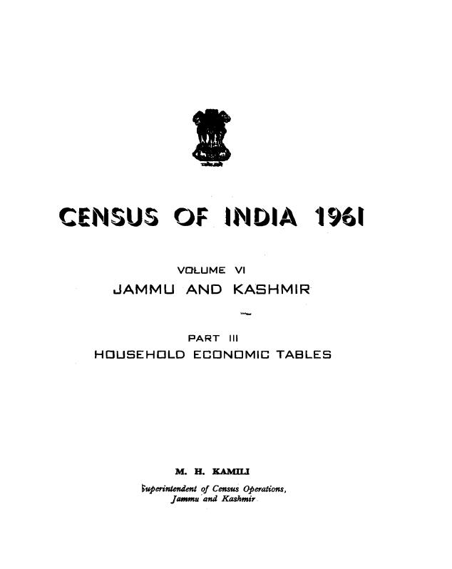Household Economic Tables, Part III, Vol-VI - Census 1961