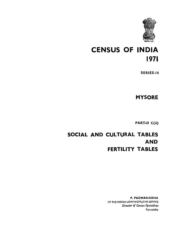 Social and Cultural Tables and Fertility Tables, Part II-C II, Series-14 - Census 1971