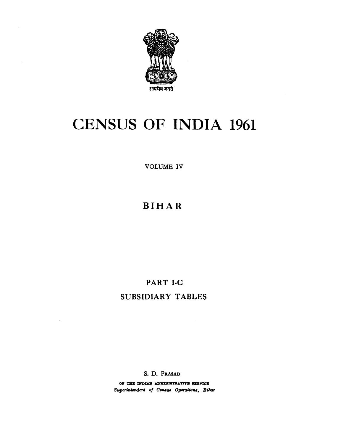 Subsidiary Tables, Part I-C, Volume IV, Bihar - Census 1961