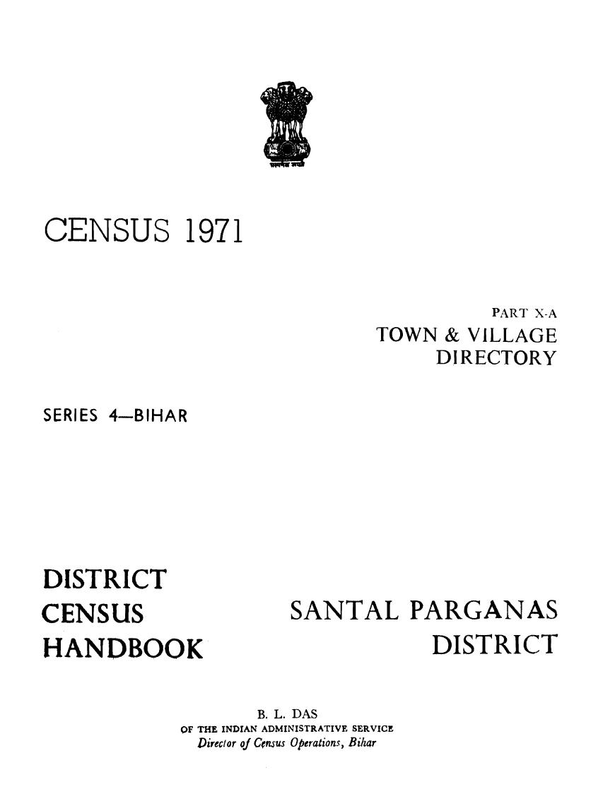 Village & Townwise Primary Census Abstract, Santal Parganas District , Part X-B, Series-4, Bihar - Census 1971
