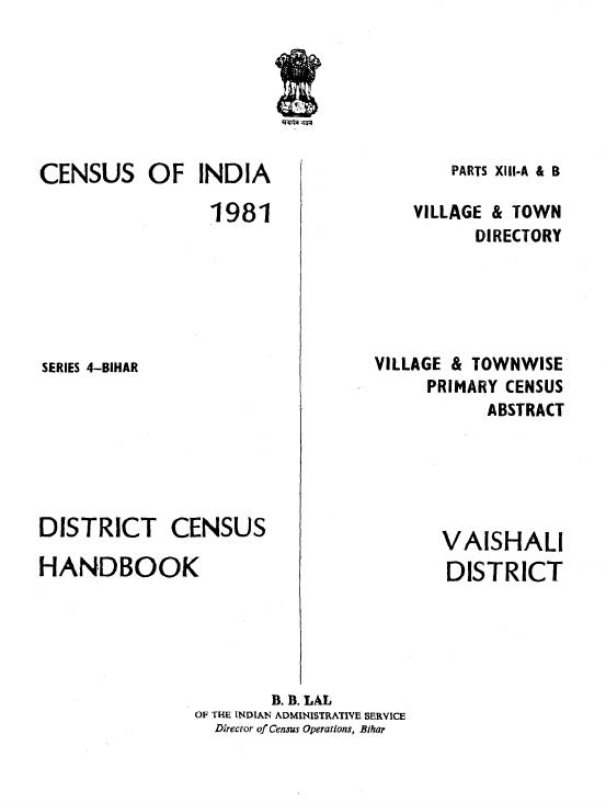Village & Townwise Primary Census Abstract, Vaishali District, Series-4, Bihar - Census 1981
