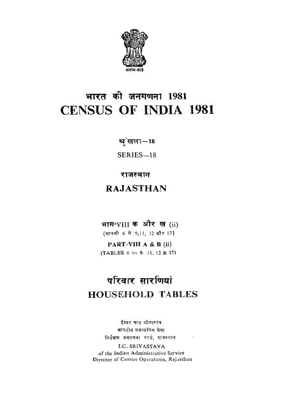 Household Tables, Part VIII A & B, Series-18, Rajasthan - Census 1981