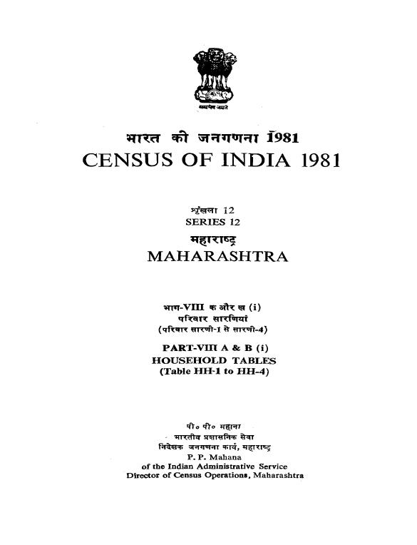 Household Tables, Part VIII A & B (i), Series-12 - Census 1981