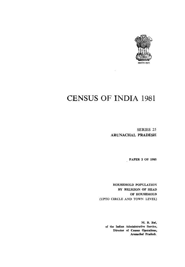 Household Population by Religion of Head of Household, Series-25, Arunachal Pradesh - Census 1981