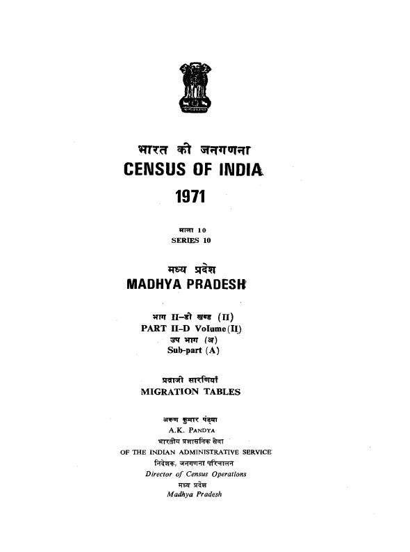 Migration Tables, Part II-D, Sub-part (A), Vol-II, Series-10 - Census 1971