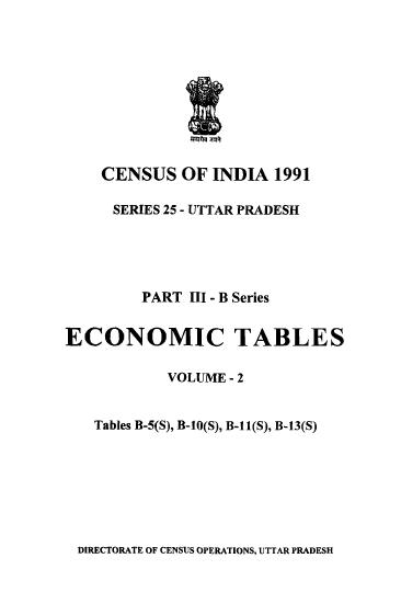 Economic Tables, Part III-B-B Series, Vol-2, Series-25, Uttar Pradesh - Census 1991