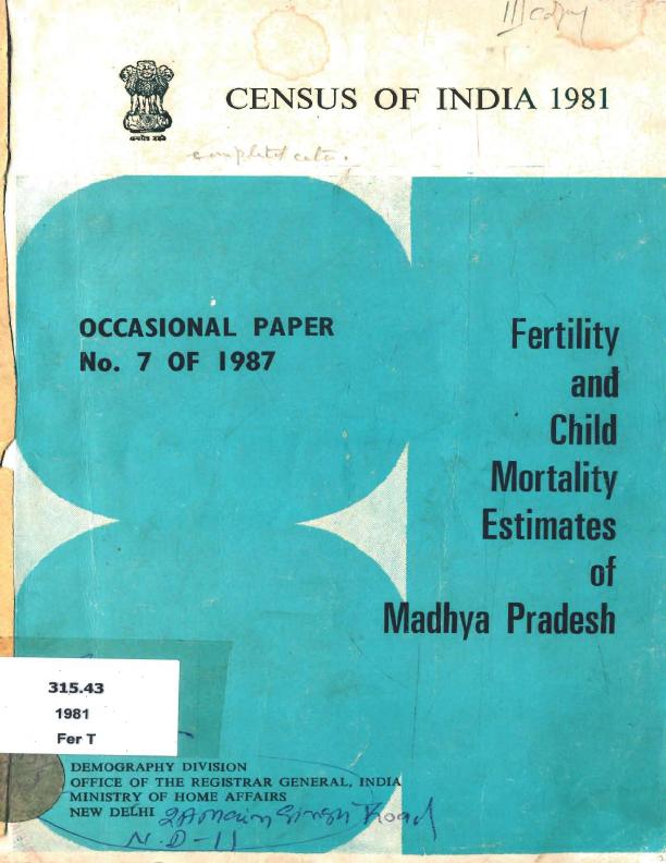Fertility and Child Mortality Estimates of Madhya Pradesh, Series-11 - Census 1981
