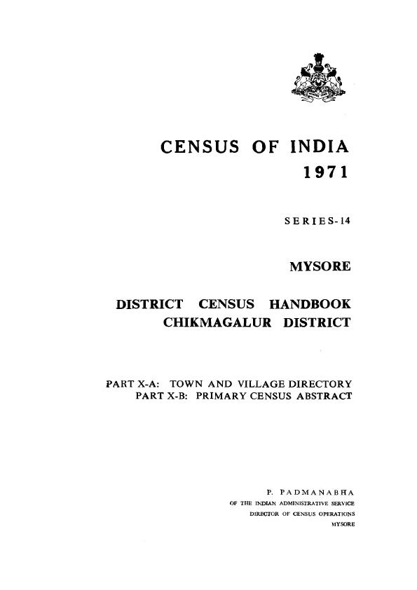 District Census Handbook, Chikmagalur, Part X-A, B, Series-14,Mysore - Census 1971