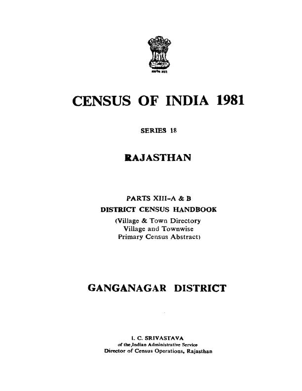 District Census Handbook, Ganganagar, Part XIII-A & B, Series-18, Rajasthan - Census 1981