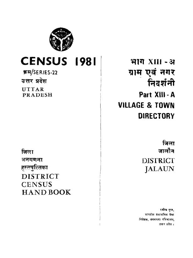 District Census Handbook, Jalaun, Part XIII-A, Series-22, Uttar Pradesh - Census 1981