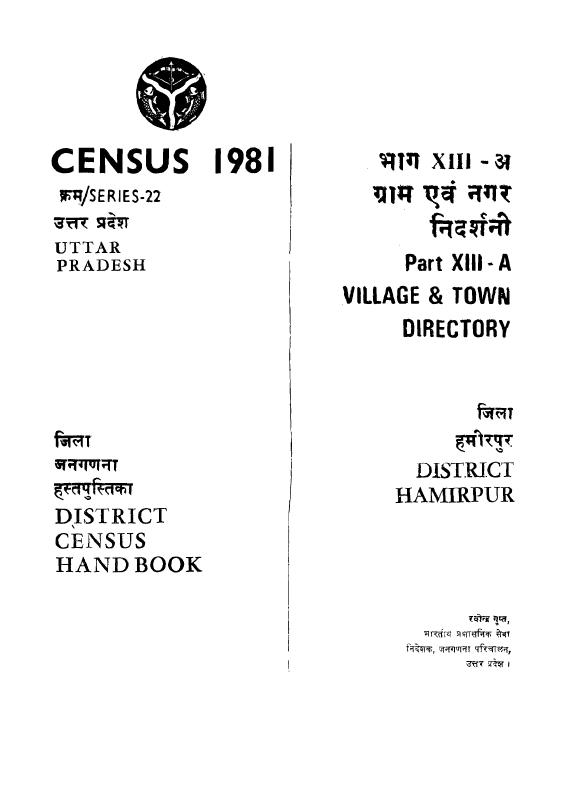 District Census Handbook, Hamirpur, Part XIII-A, Series-22, Uttar Pradesh - Census 1981