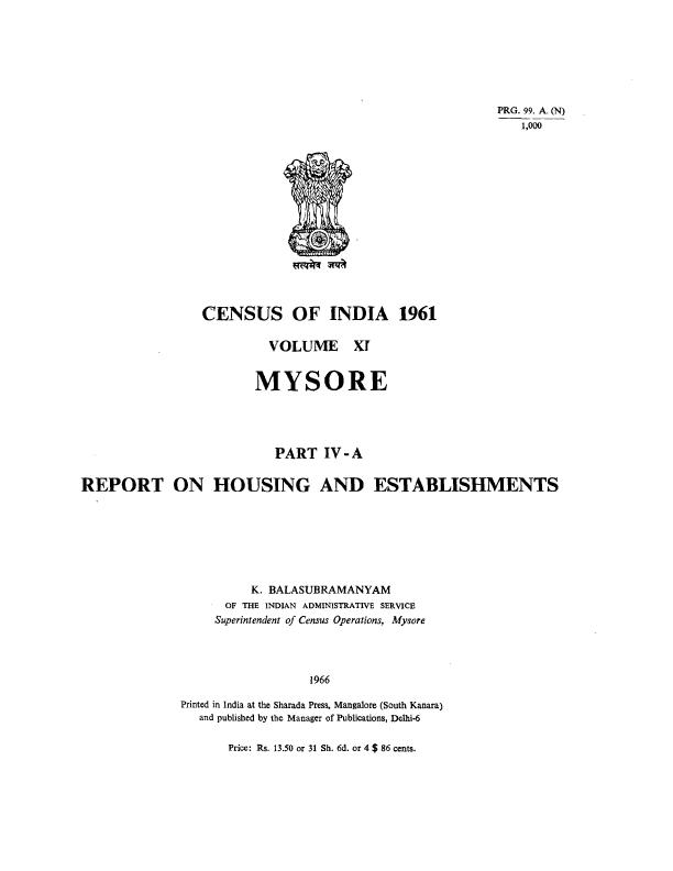Mysore Report on Housing and Establishments, Part IV-A, Vol-XI - Census 1961