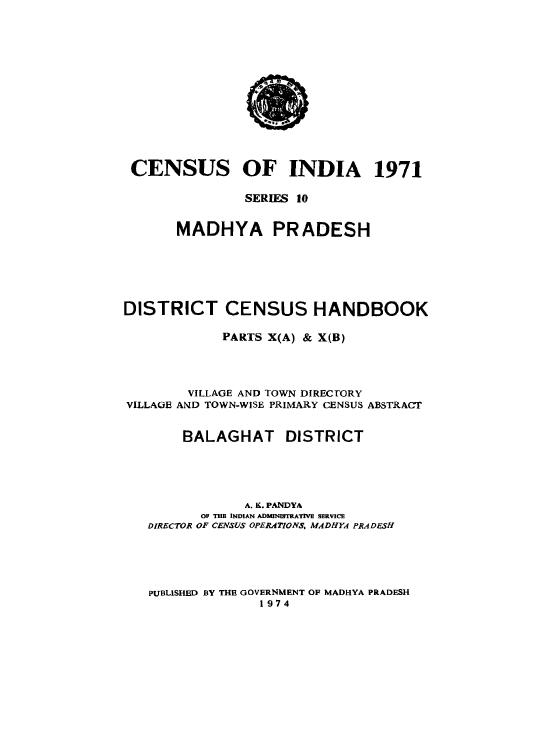 District Census Handbook, Balaghat, Parts X (A) & X (B), Series-10 - Census 1971