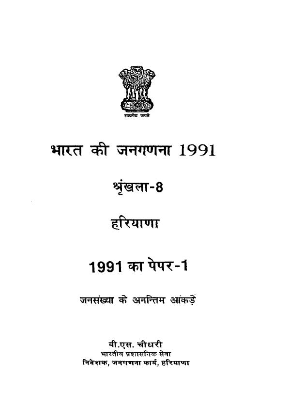 Provisional Population Totals, Series-8, Haryana - Census 1991