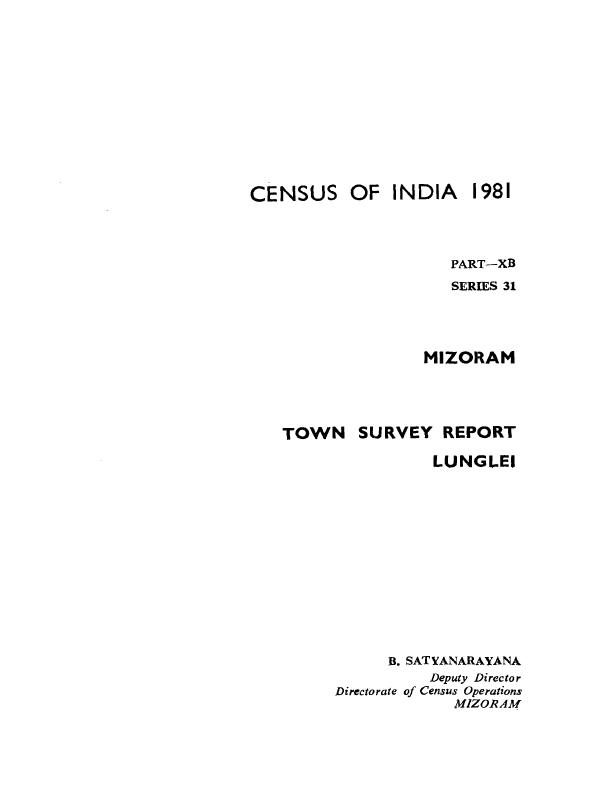 Town Survey Report Lunglei, Part XB, Series-31, Mizoram - Census 1981