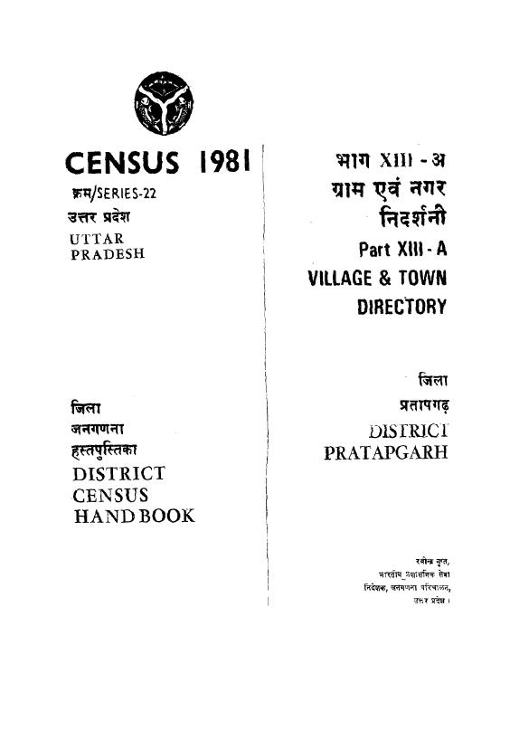 District Census Handbook, Pratapgarh, Part XIII-A, Series-22, Uttar Pradesh - Census 1981