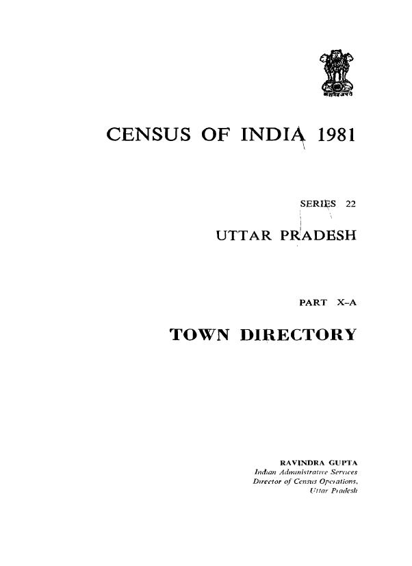 Town Directory, Part-X A, Series-22, Uttar Pradesh - Census 1981