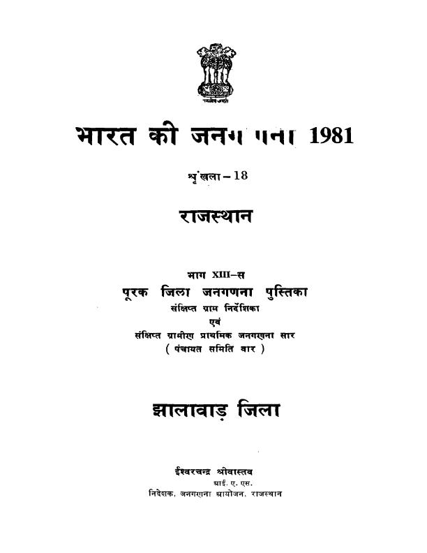 Complementary District Census Handbook, Jhalawar, Part XIII-S, Series-18, Rajasthan - Census 1981