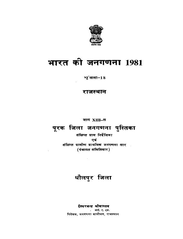 Complementary District Census Handbook, Dhulapur, Part XIII-S, Series-18, Rajasthan - Census 1981