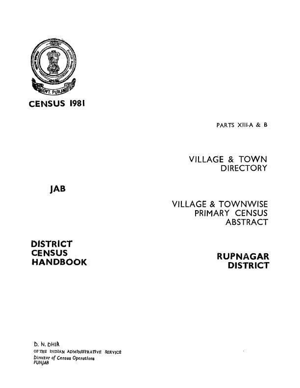 District Census Handbook, Rupnagar, Part XIII-A & B, Series-17, Punjab - Census 1981