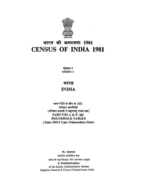 Household Tables, Part-VIII A&B (iii), Series 1, India - Census 1981