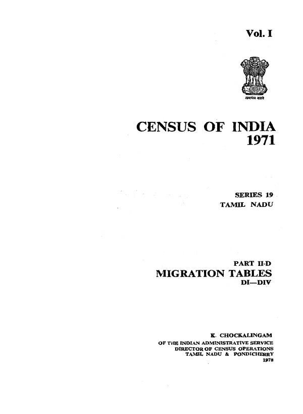 Migration Tables, DI-DIV Part II-D, Series-19 Vol.I - Census 1971