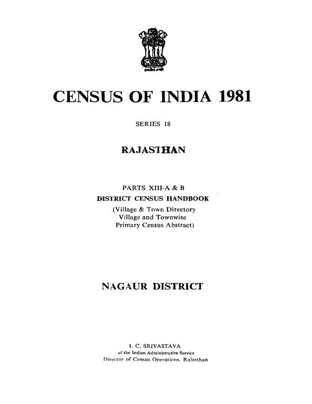 District Census Handbook, Nagaur, Part XIII-A & B, Series-18, Rajasthan - Census 1981