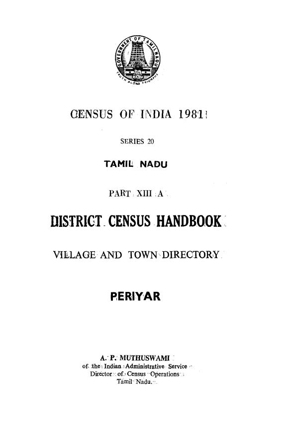 District Census Handbook, Periyar, Part XIII-A, Series-20 - Census 1981