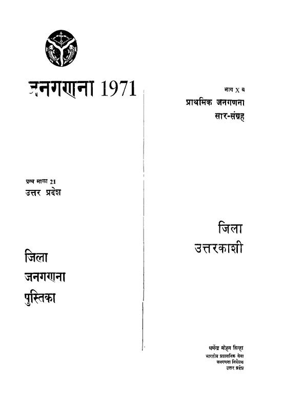 District Census Handbook, Uttarkashi, Part XIII-B, Series-22, Uttar Pradesh - Census 1971