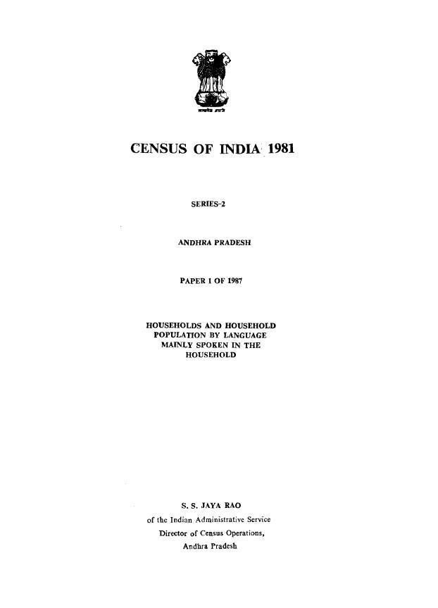Household & Household Population by Language Mainly Spoken in The Household.Series-2 - Census 1981