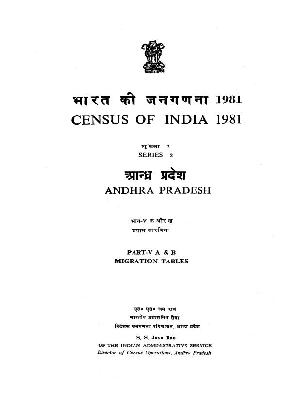Migration Tables, Part -V A & B, Series-2 - Census 1981