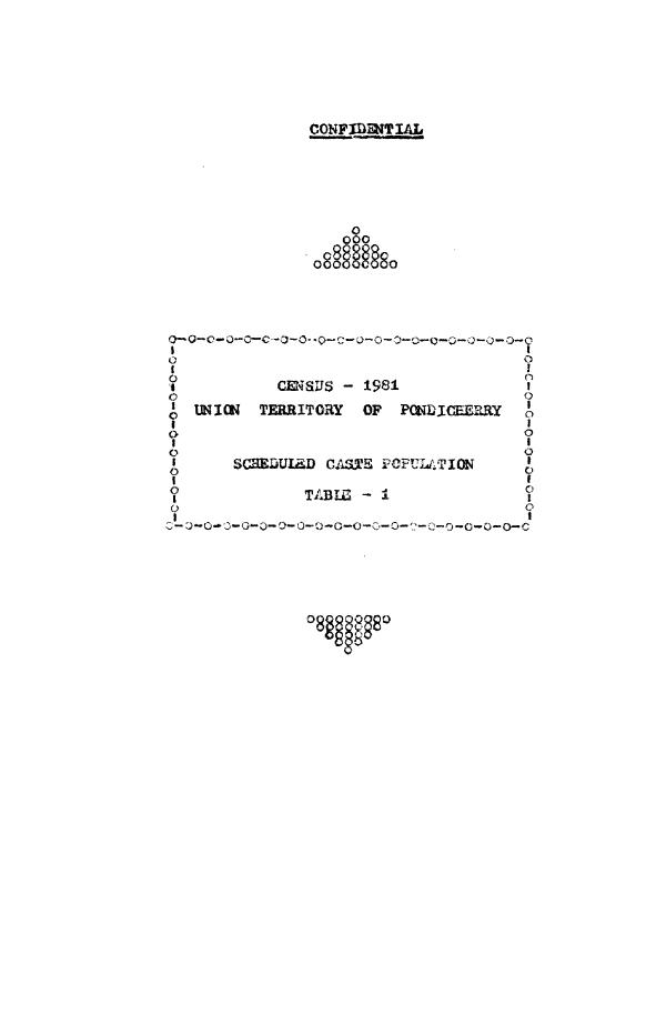 Union Territory of Pondicerry Scheduled Caste Population - Census 1981