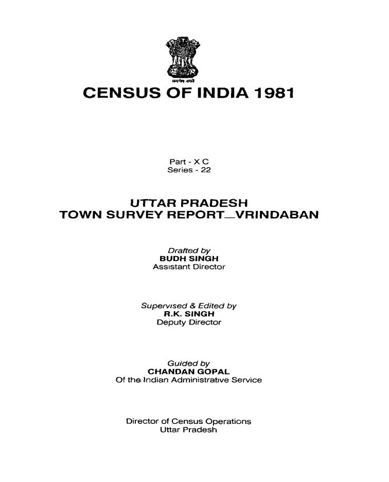 Town Survey Report-Vrindaban, Part-X C, Series-22, Uttar Pradesh - Census 1981