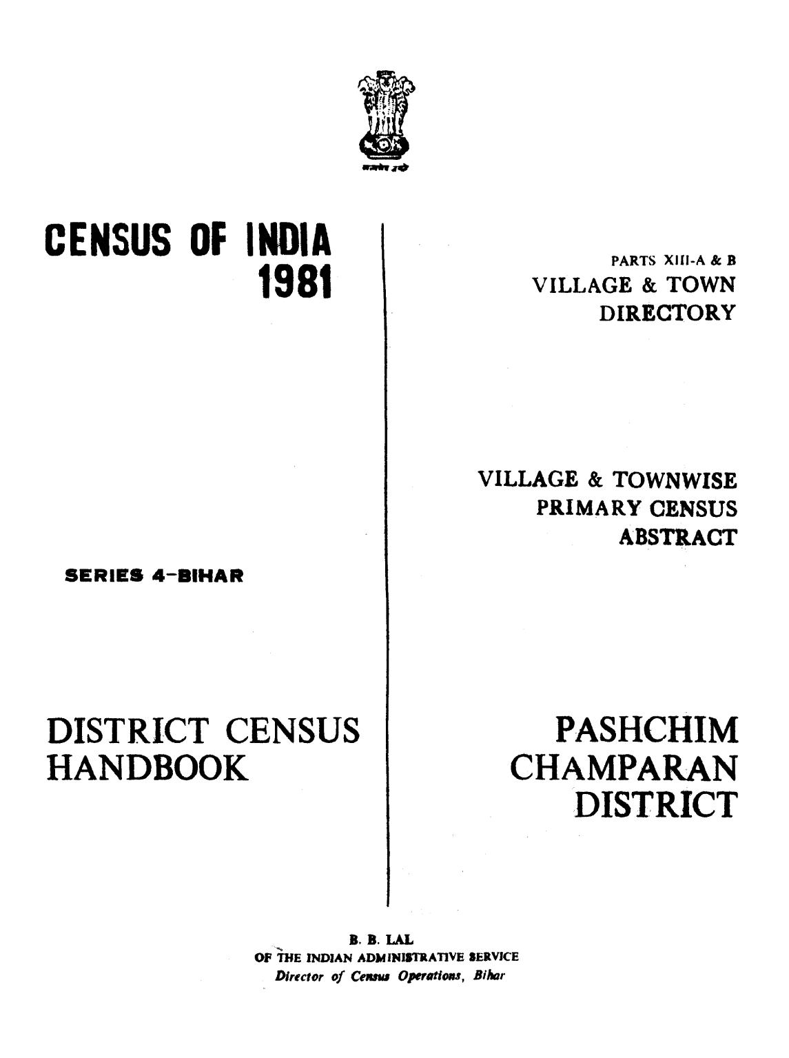 Village & Townwise Primary Census Abstract, Pashchim Champaran District, Series-4, Bihar - Census 1981