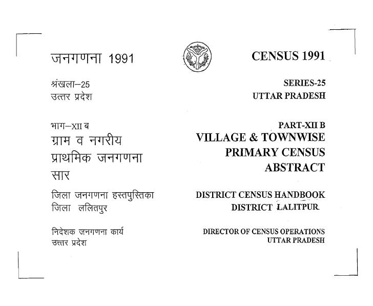 District Census Handbook, Lalitpur, Part-XII-B, Series-25, Uttar Pradesh - Census 1991