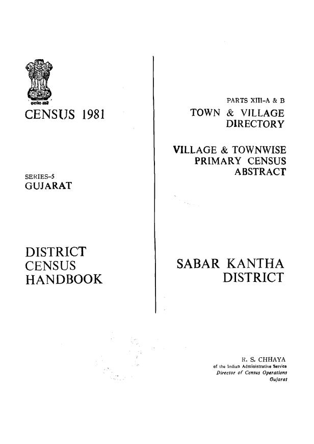 District Census Handbook, Sabar Kantha, Part XIII-A & B, Series-5 - Census 1981
