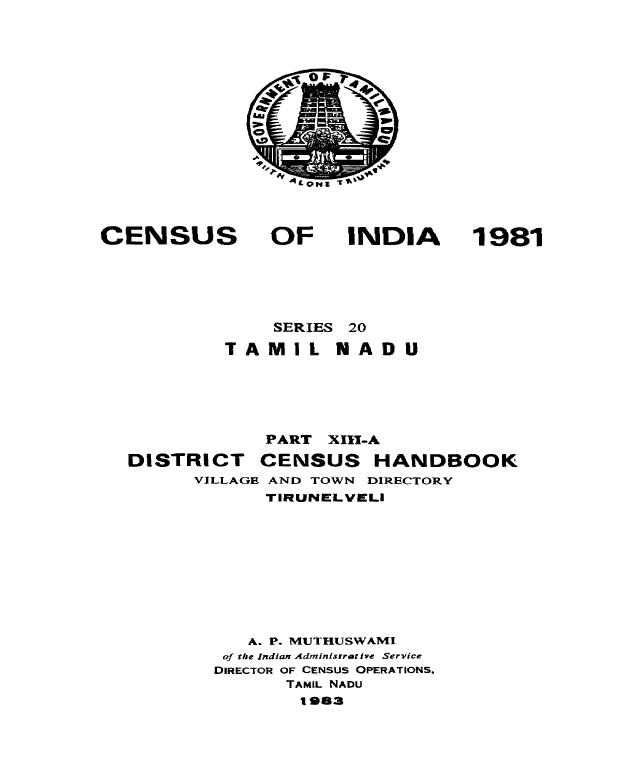 District Census Handbook, Tirunelveli, Part XIII-A, Series-20 - Census 1981