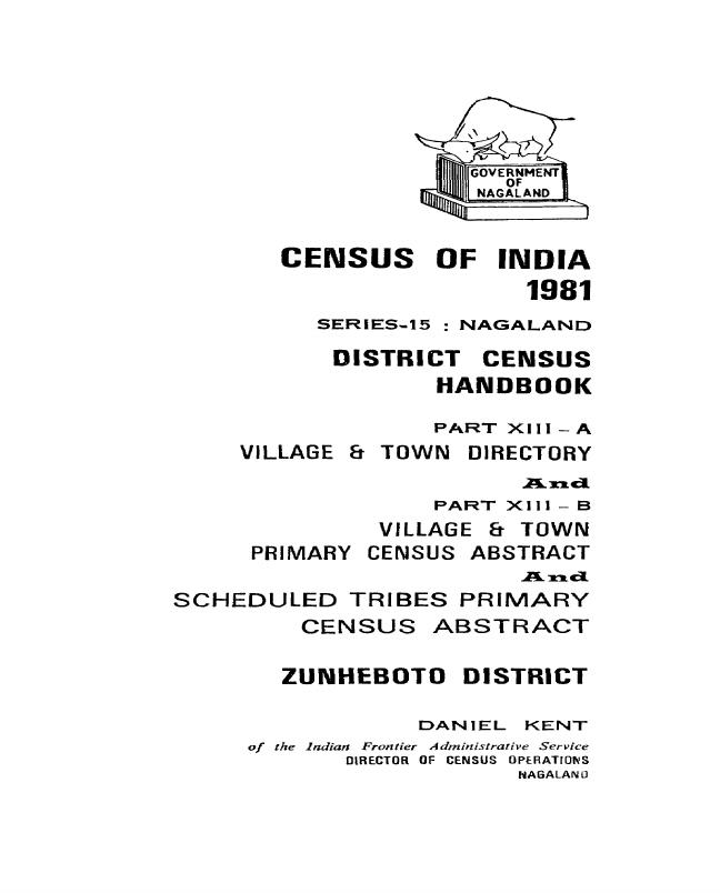 District Census Handbook, Zunhebota, Part XIII- A & B, Series-18, Nagaland - Census 1981