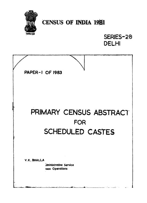 Primary Census Abstract for Scheduled Castes, Series-28, Delhi - Census 1981