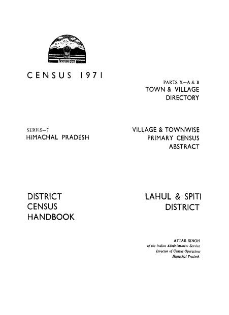 Village & Town wise Primary Census Abstract, Lahul & Spiti, Part-X-A & B ,Series-7, Himachal Pradesh - Census 1971