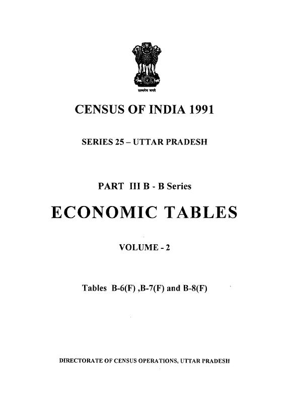 Economic Tables, Part III-B-B Series, Vol-2, Series-25, Uttar Pradesh - Census 1991