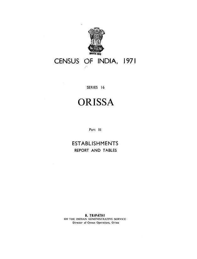 Establishments Report and Tables, Part-III, Series-16, Orissa - Census 1971